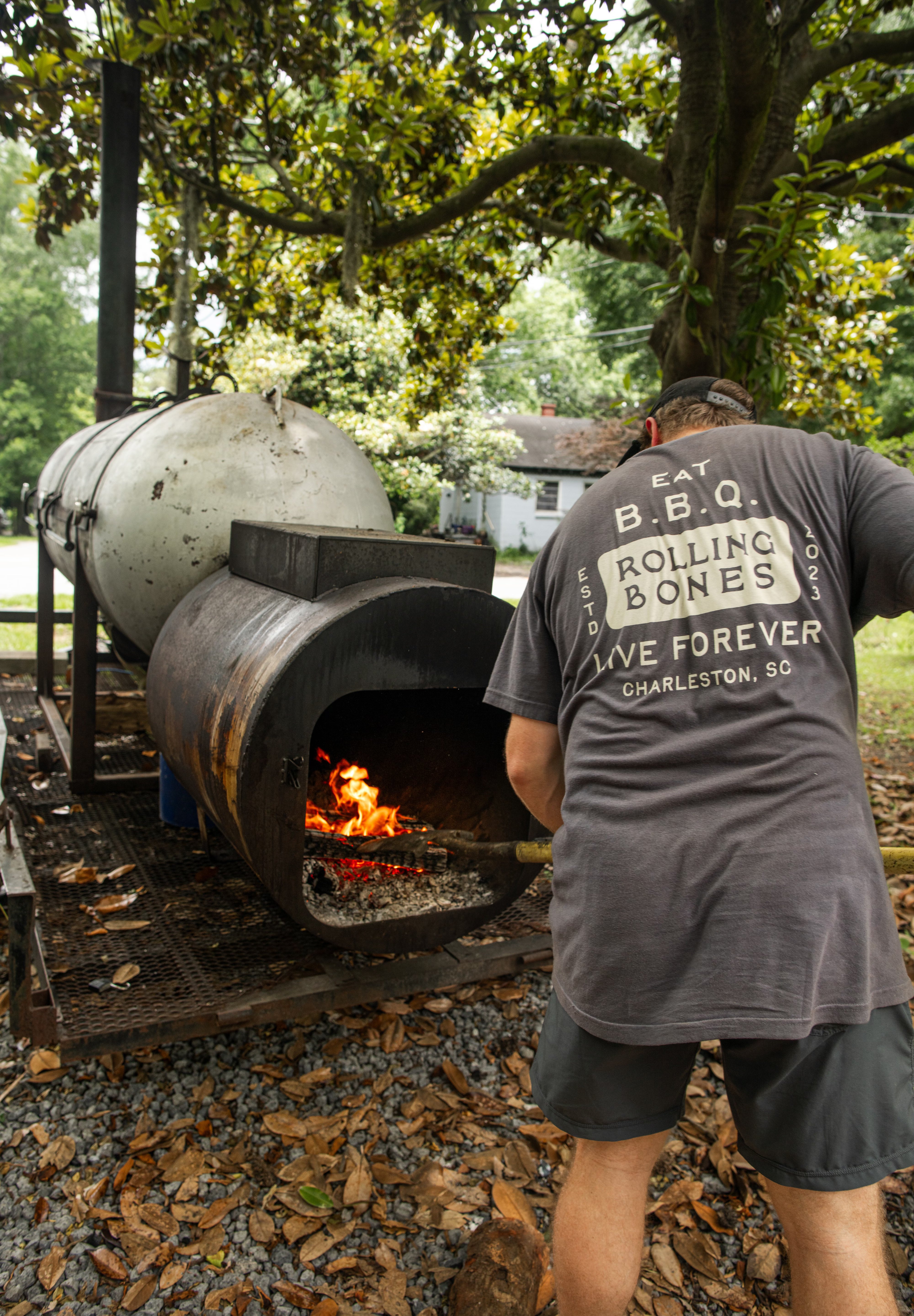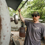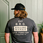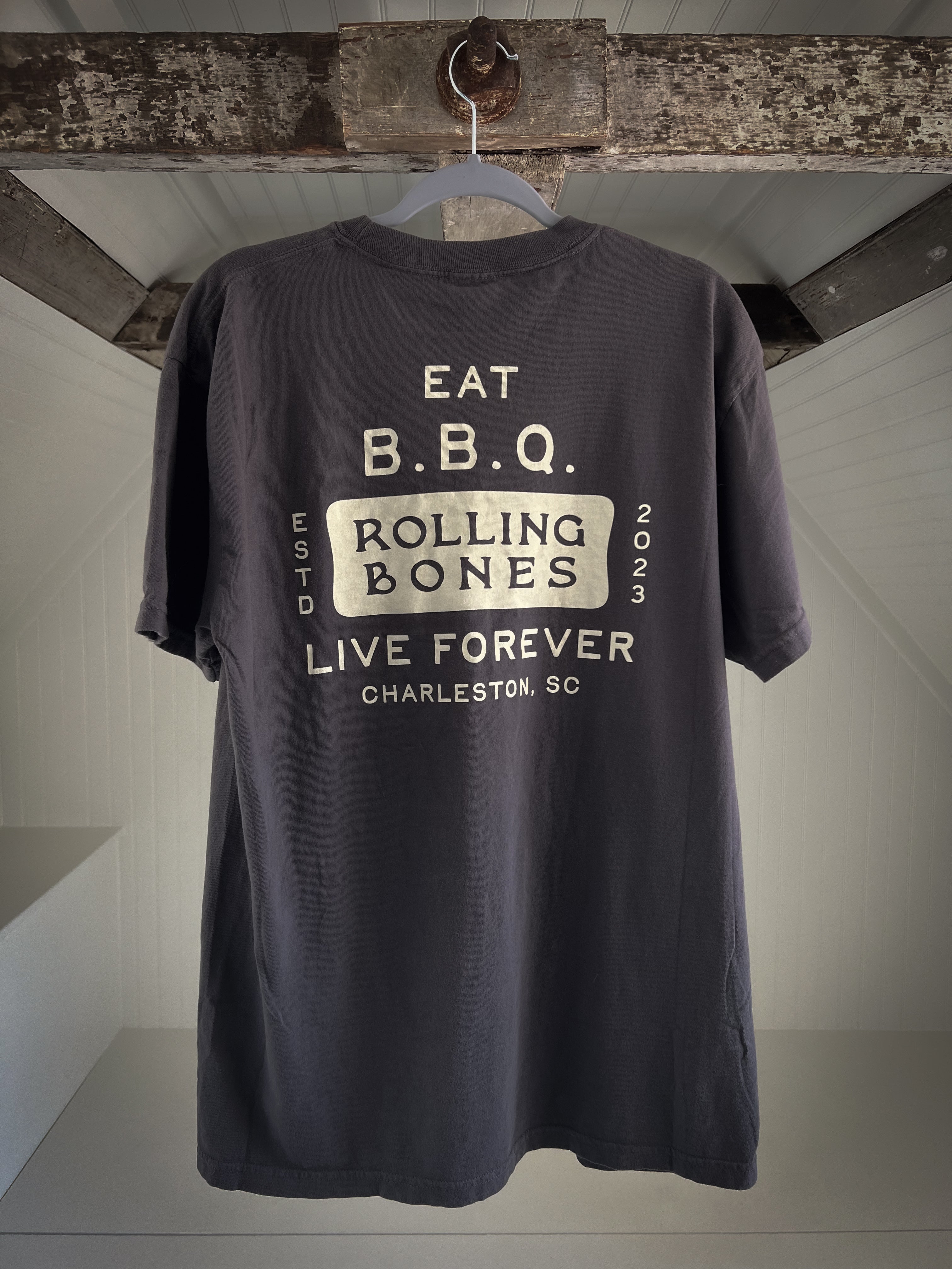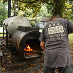 100% cotton Comfort Colors heavy weight T that will hold up to a perpetual cook>wash>cook>wash.