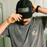 Embroidered patch sewn right into a Richardson Umpqua rope snapback hat.